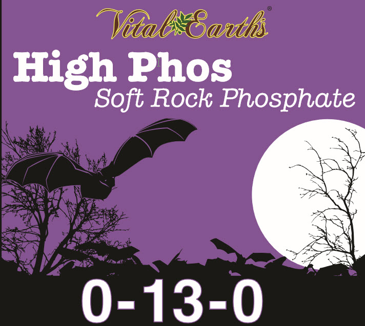 100% bat guano promotes intense fruiting and flowering-no additives-known to be an effective fertilizer for centuries Soils deficient in organic matter may be made more productive by the use of Vital Earth'sĀ® High Phos Soft Rock Phosphate. Promotes improved crop yields.